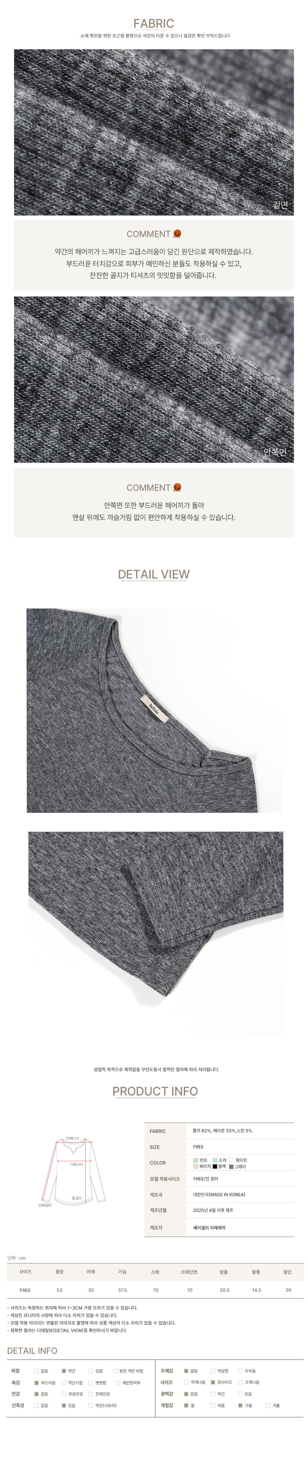 商品材質 : 聚酯纖維 62%、人造絲 33%、氨綸 5%