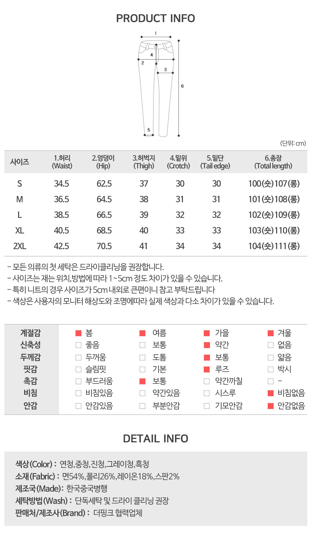 | 尺寸 | 腰 | 臀圍 | 前檔長 | 大腿寬 | 褲管寬 | 全長 |
