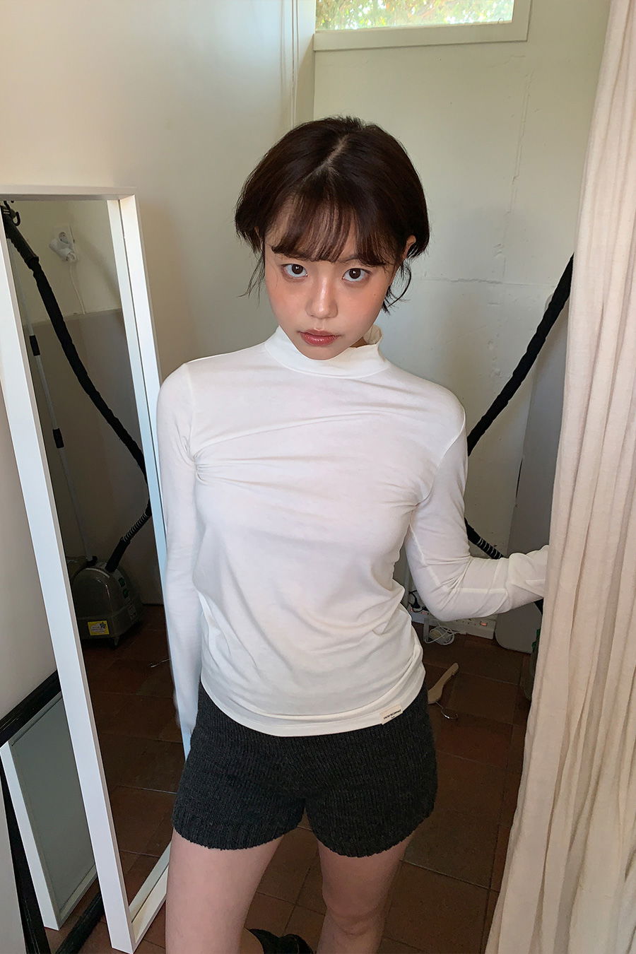 商品材質 : 人造絲 49% + 聚酯纖維 40% + 聚氨酯 11%