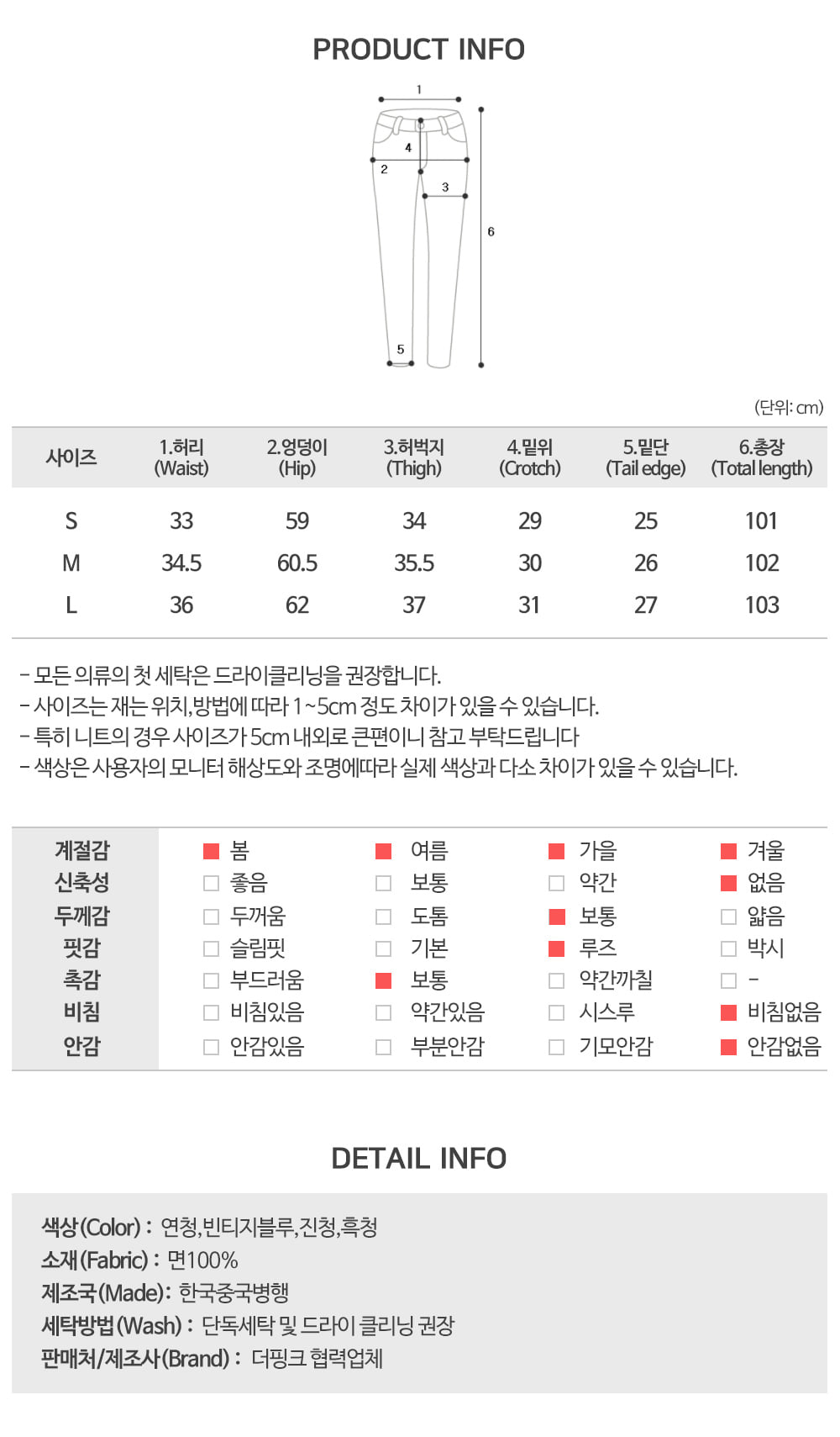 | 尺寸 | 腰 | 臀圍 | 前檔長 | 大腿寬 | 褲管寬 | 全長 |