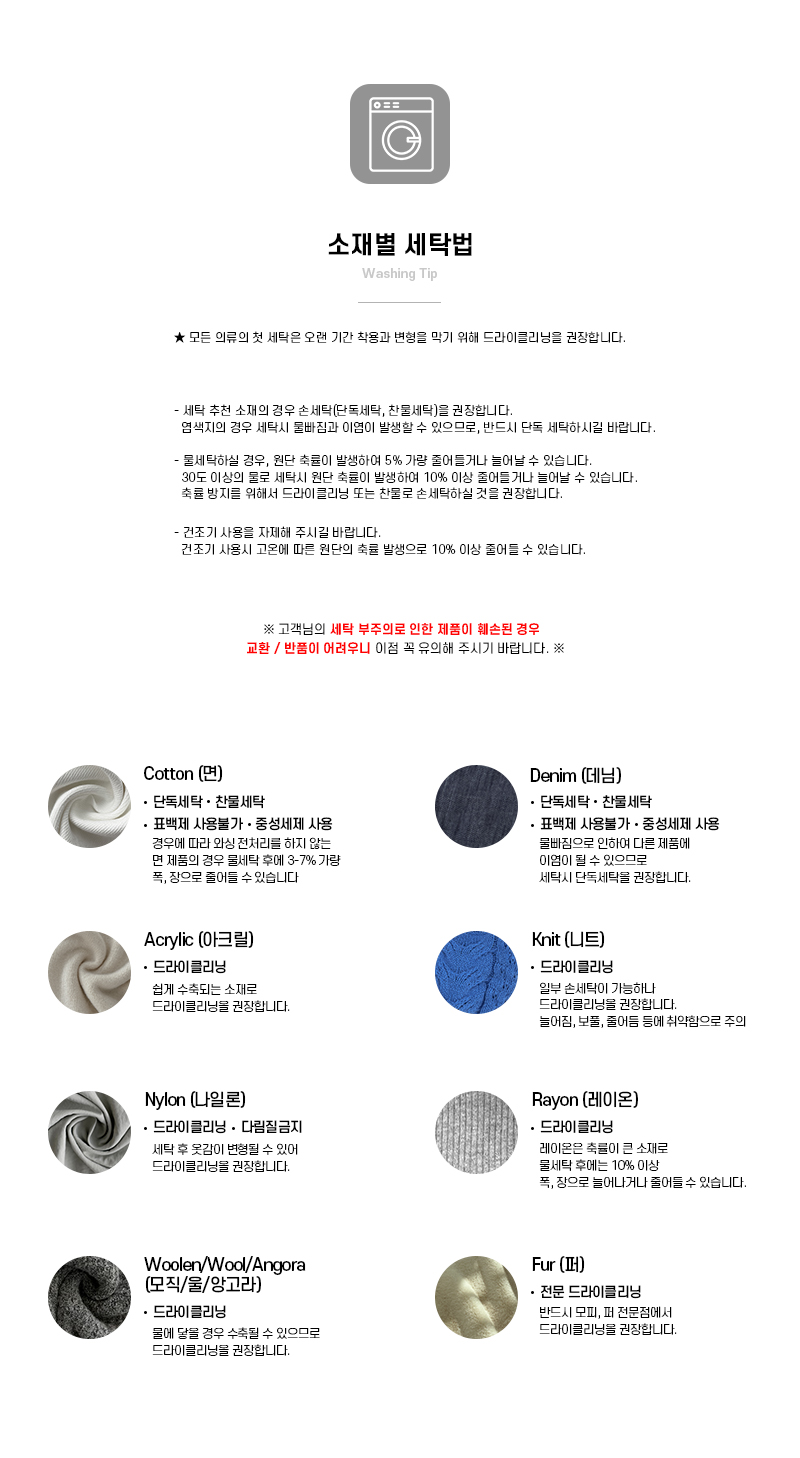 · 衣物第一次清洗建議乾洗,若無洗標之商品請詢問專業洗衣店,並建議清洗後再穿著。