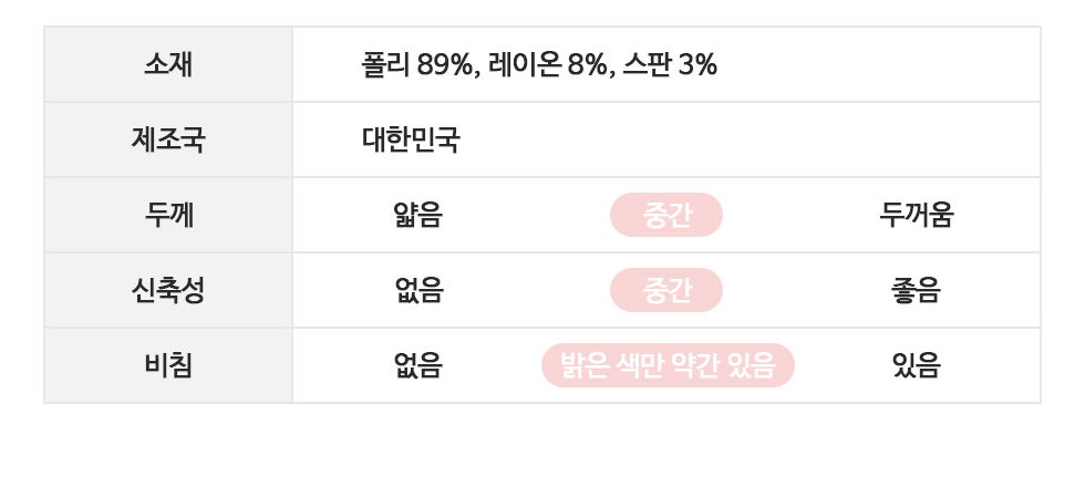 商品材質 : 聚酯纖維 89%、人造絲 8%、氨綸 3%