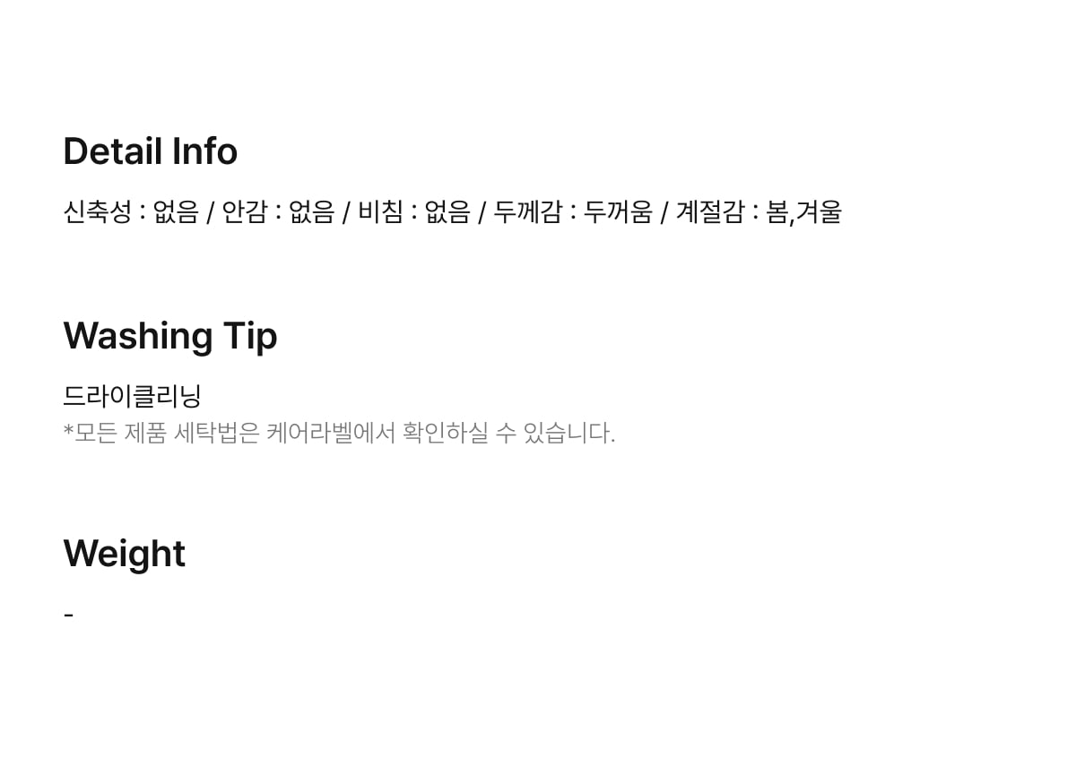 · 衣物第一次清洗建議乾洗,若無洗標之商品請詢問專業洗衣店,並建議清洗後再穿著。