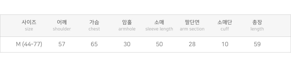 | 尺寸 | 肩寬 | 胸部 | 腋下袖寬 | 袖長 | 手腕袖寬 | 全長 |